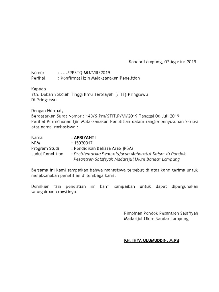 Surat Balasan Skripsi - Http Repository Unissula Ac Id 19971 11 Lampiran Pdf : Maybe you would like to learn more about one of these?. Maybe you would like to learn more about one of these? Check spelling or type a new query. We did not find results for: